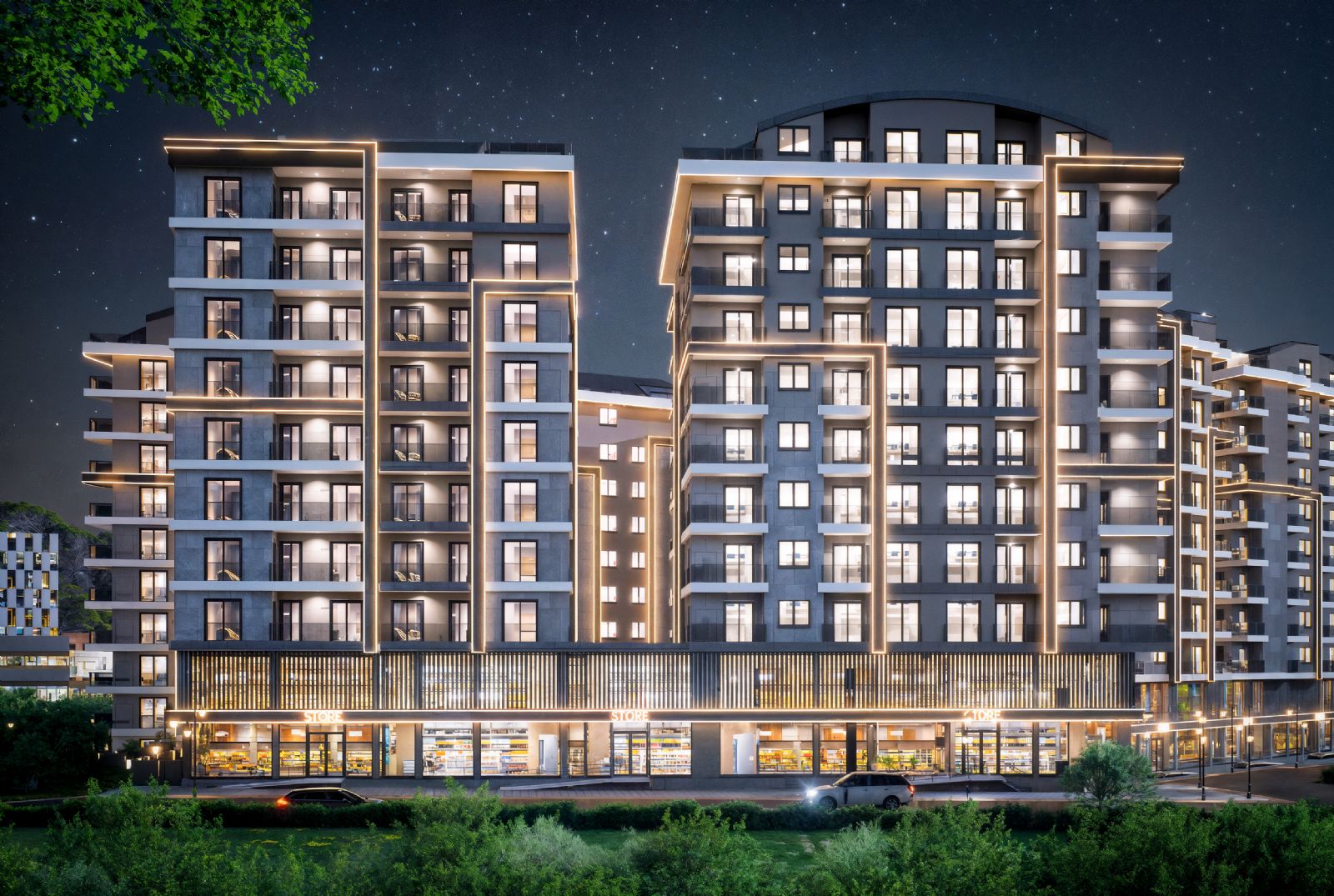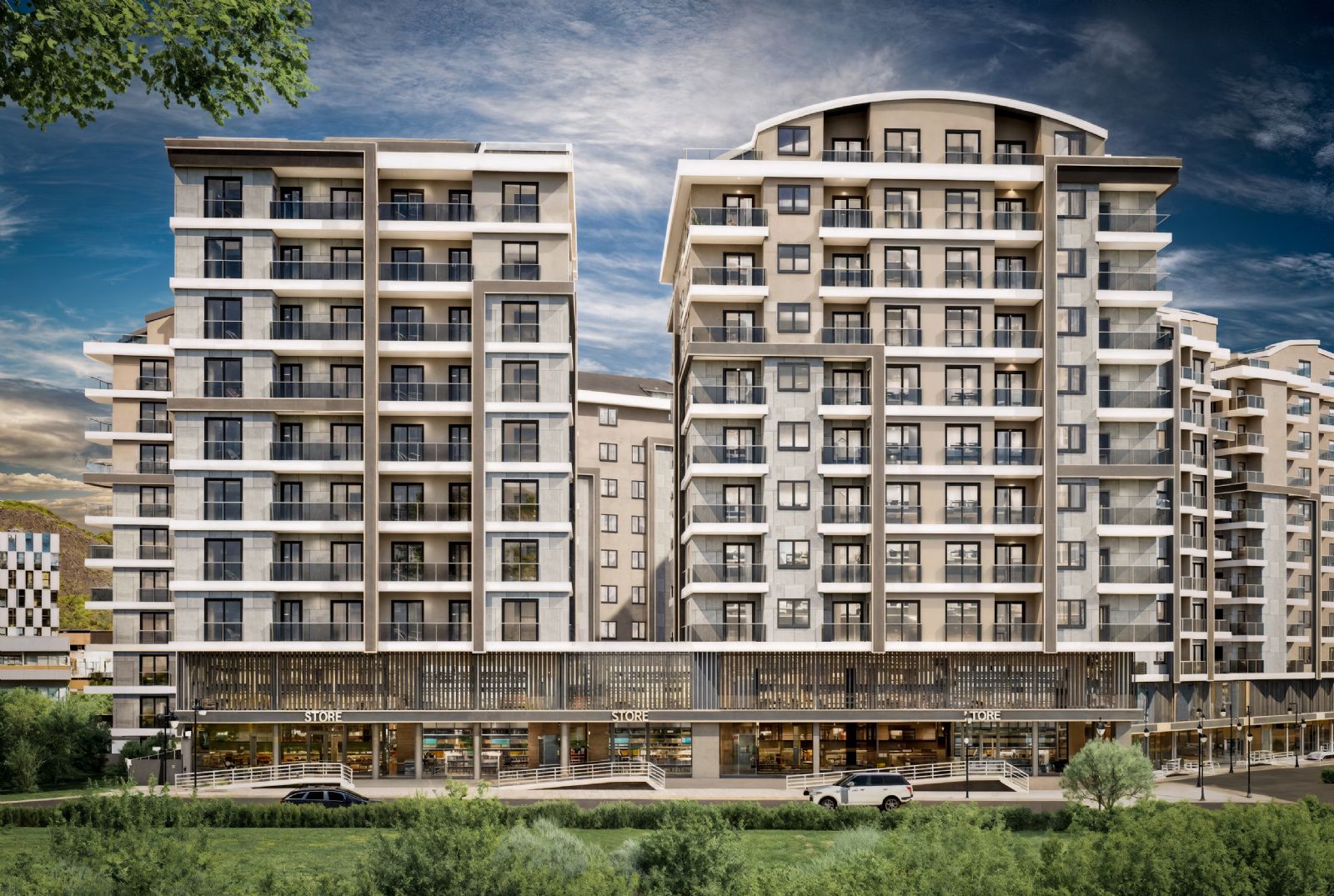 Diğer bloklarda ise mağazalar ve konutlar bulunmaktadır. Projede yer alan ticari alanlar, seçkin markalara ev sahipliği yapabilecek niteliktedir.