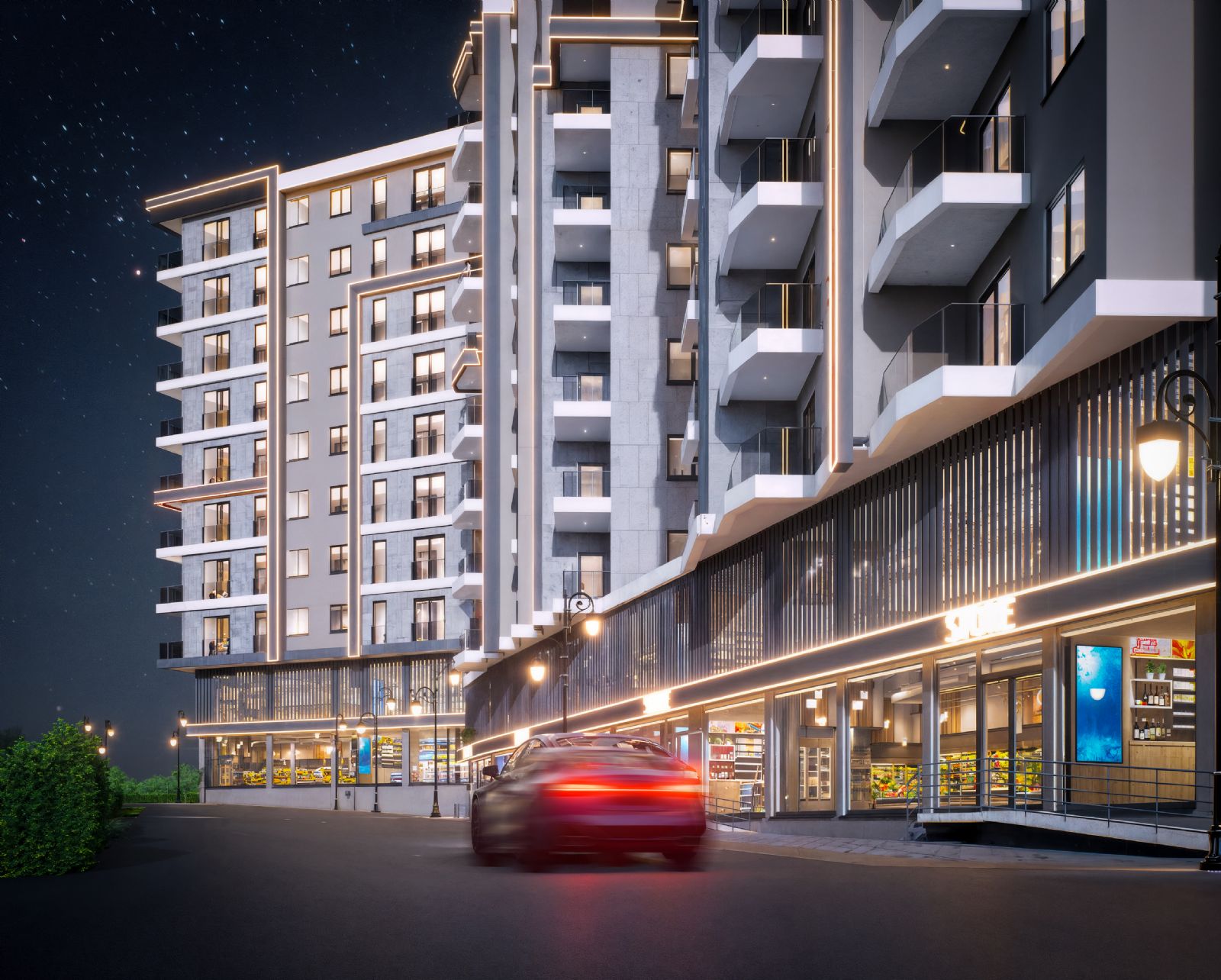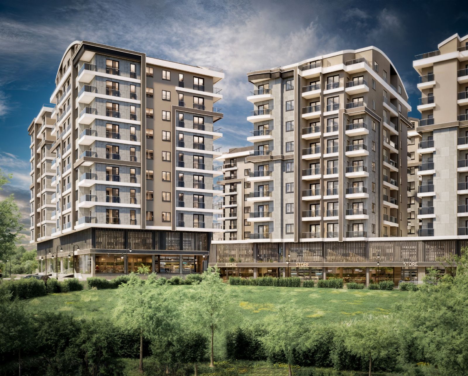 Diğer bloklarda ise mağazalar ve konutlar bulunmaktadır. Projede yer alan ticari alanlar, seçkin markalara ev sahipliği yapabilecek niteliktedir.